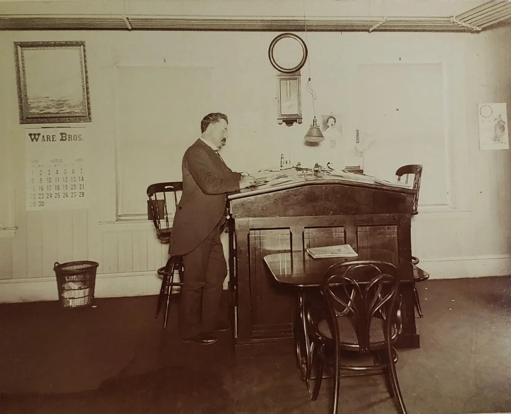 Patrick H. Connor in the office of the Connor Carriage Company, 1900.